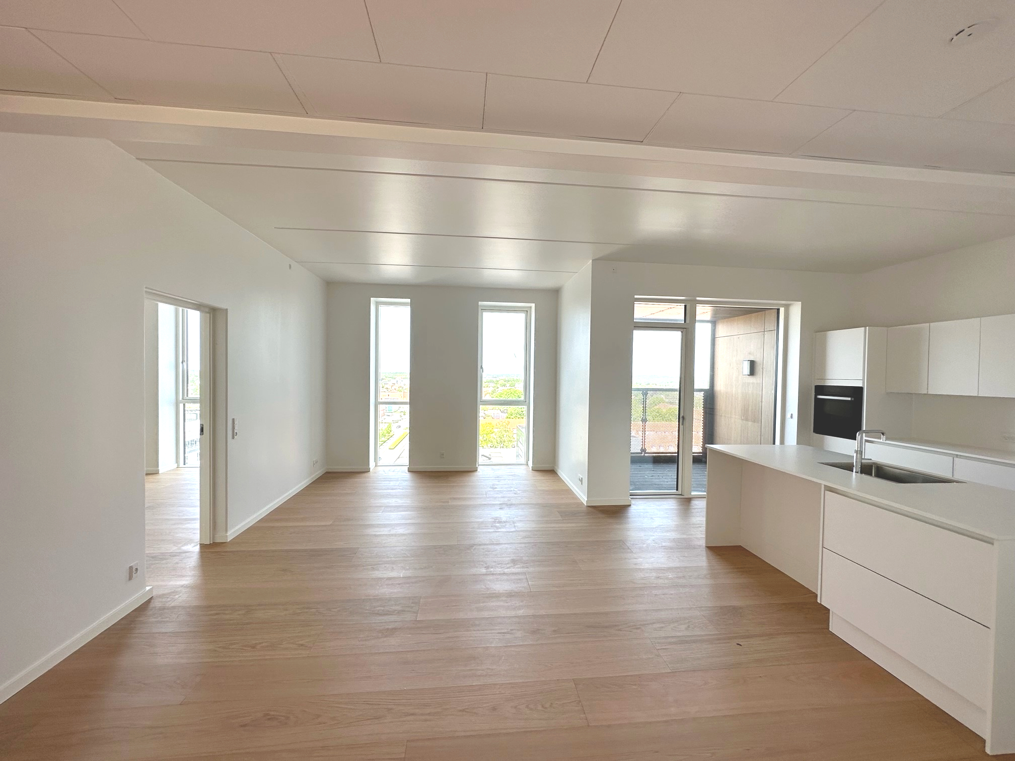 En af de mest eksklusive lejligheder Viborg har at byde på, er nu kommet til leje. Lejligheden som er nyopført, er på hele 203 kvm og indrettet med 4 værelser. Som lejer har du egen indgang ved siden af hotellets hovedindgang, og derfor også privat elevator til lejemålet, der betjenes med kode, og deles med de få andre lejligheder. Der er mulighed for morgenmad i lobbyen samt smagsfulde drinks om aftenen, der eksempelvis kan nydes på den store tagterrasse - med udsigt ud over hele Viborg. Der er kort gåafstand til handlemuligheder, gode restauranter, hyggelige caféer og kulturliv. Du får 180 graders udsigt fra 9. sal ud over Viborg fra lejlighedens to altaner. Så du har byens bedste udsigt over Viborg by fra din bolig. Stuen og køkken/alrummet ligger i forbindelse med hinanden, hvor særligt lysets gennemstrømning gør lejligheden helt fantastisk. Fra både køkken og stue er der udgang til lejlighedens altaner. Lejligheden byder på 3 store værelser med faste skabe, hvor masterbedroom er med eget badeværelse. Endnu et badeværelse, samt et bryggers med vaskemaskine og tørretumbler og plads til opbevaring. Under bygningen finder du en stor parkeringskælder og en parkeringsplads til dig som lejer.