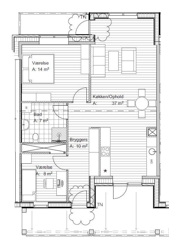 Lejligheden er nyopført i kvalitetsmaterialer og alle lejlighederne har egen altan. Dejlig lyst lejemål med plads til privatliv på altanen og med Banebyparken lige udenfor døren.